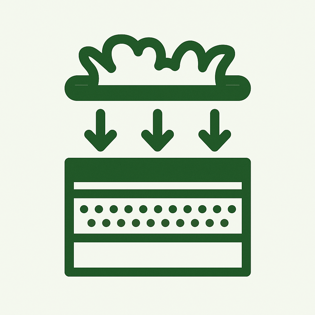 • Capas de musgo seleccionadas (como Sphagnum, Bryum o Hypnum), cultivadas en condiciones controladas para maximizar su eficiencia en la captación de partículas y gases.