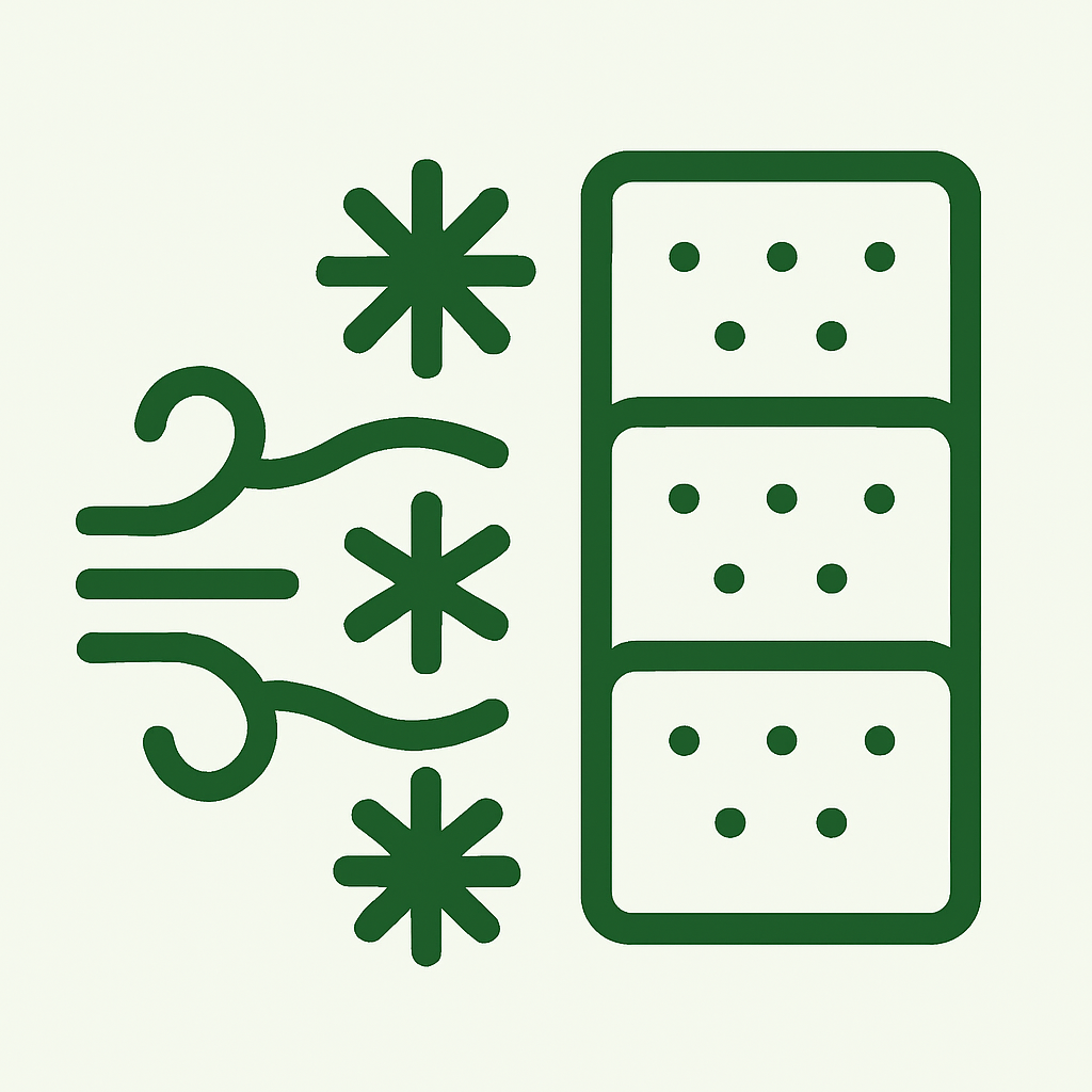 • No necesita ventiladores ni alimentación eléctrica constante, lo que lo convierte en una solución de bajo impacto ambiental.